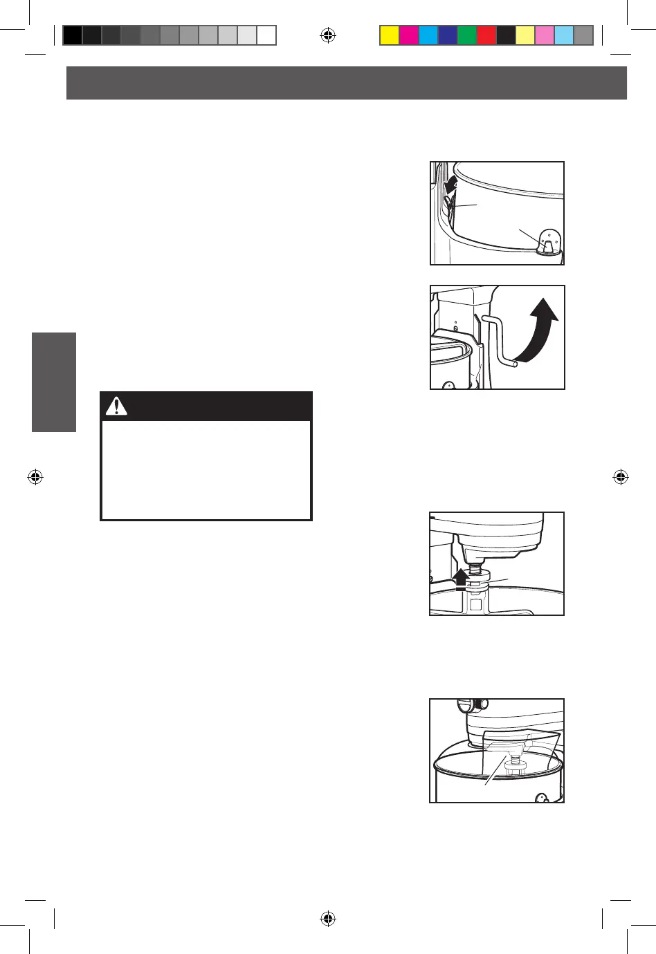 Gire la palanca de elevación del bol en sentido contrario a las agujas del
