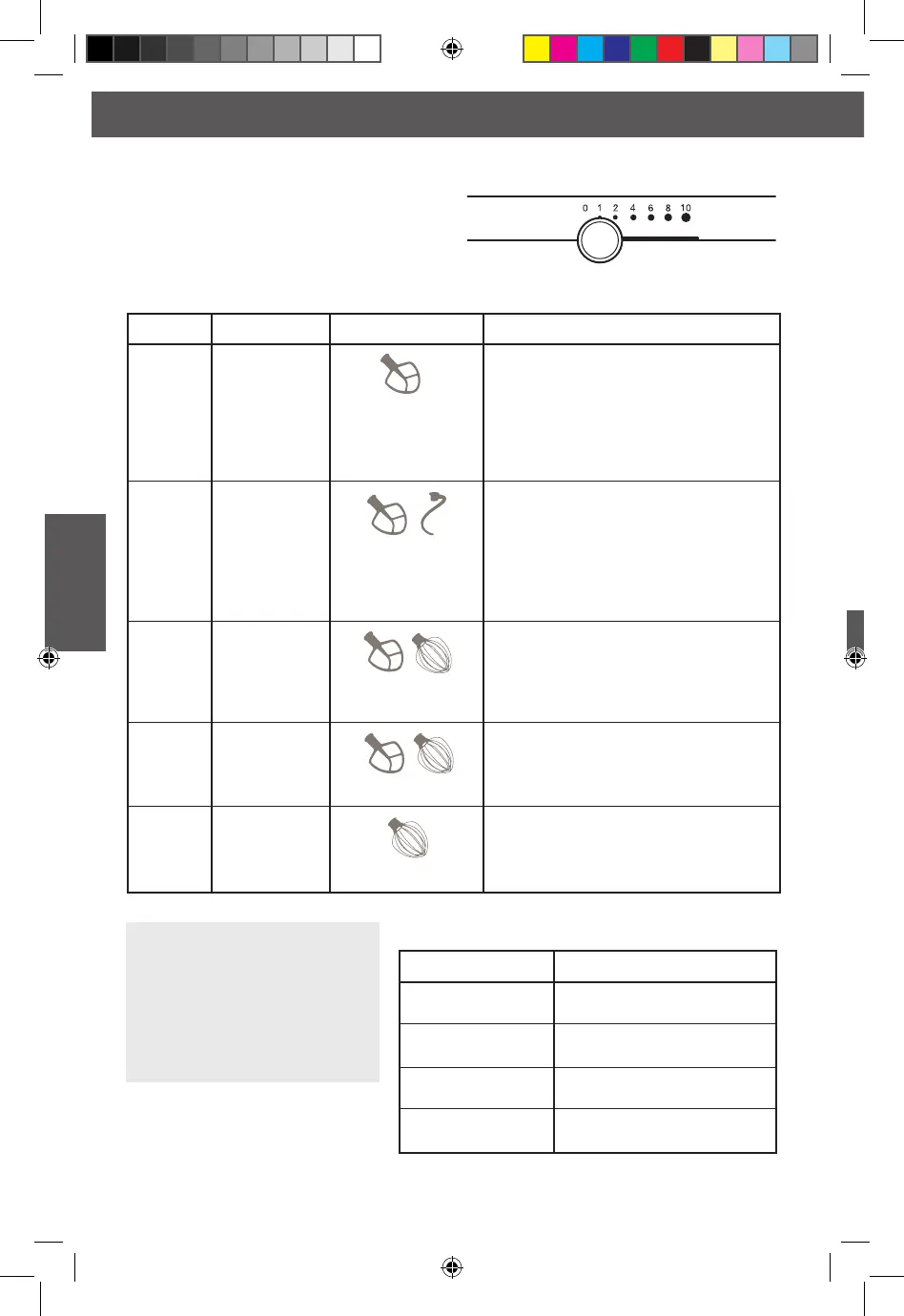 Guia de controlo de velocidade - batedeiras de 10 velocidades