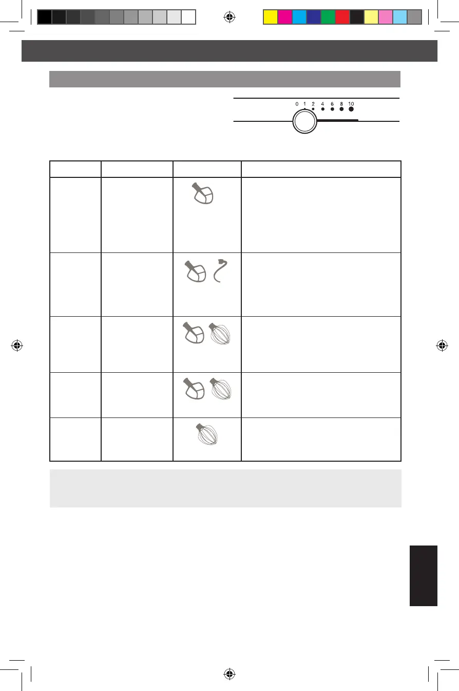 Guide för hastighetsinställning - köksmaskin med 10 hastigheter