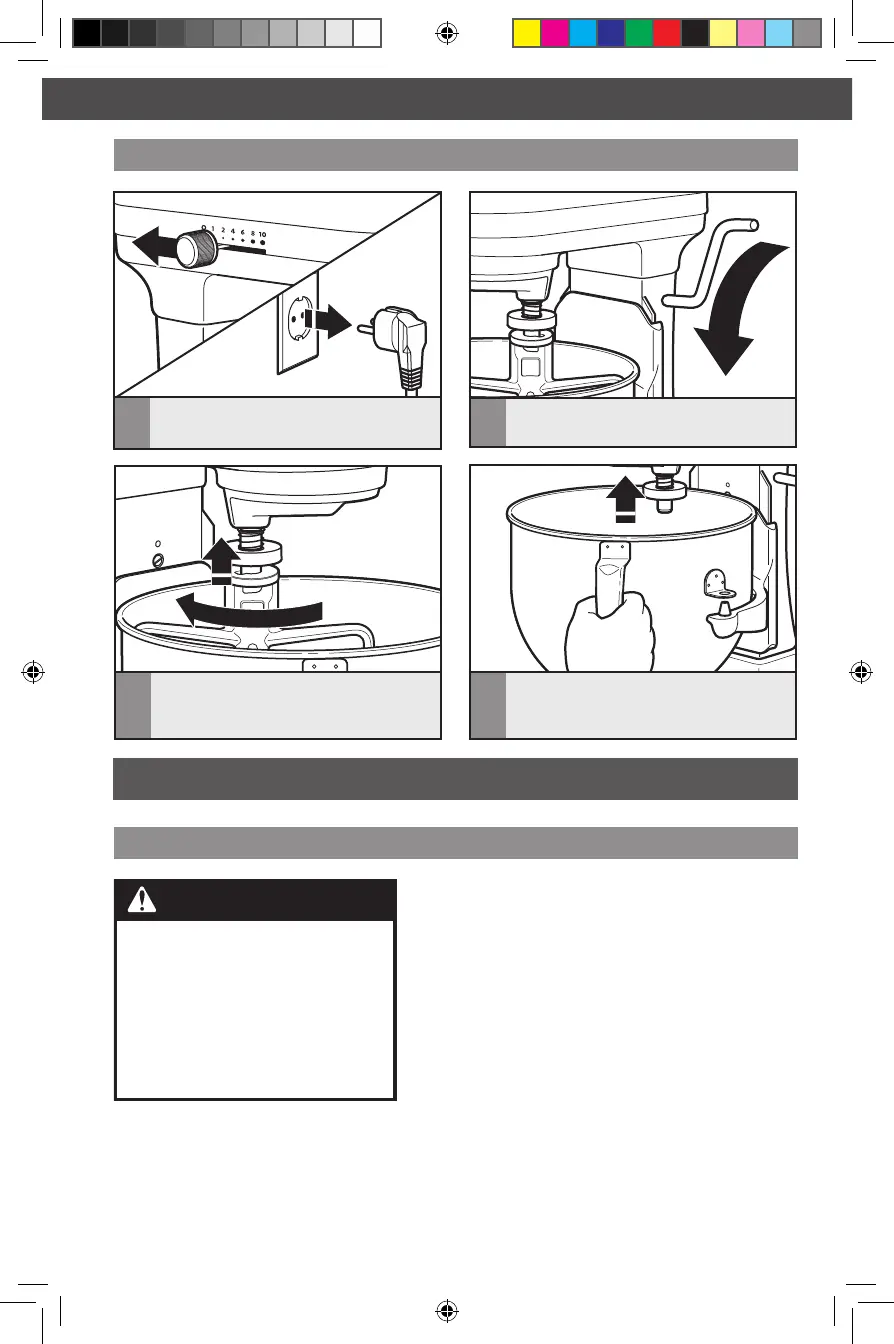 Verwijdering van de kom en menghaken