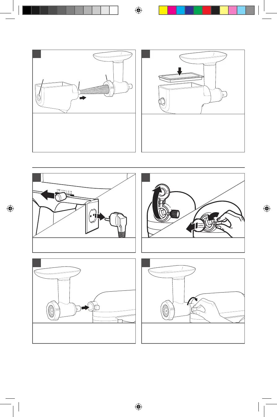 hachés ou pressés et un plus petit bol sous la sortie de l’accessoire pour récolter les résidus