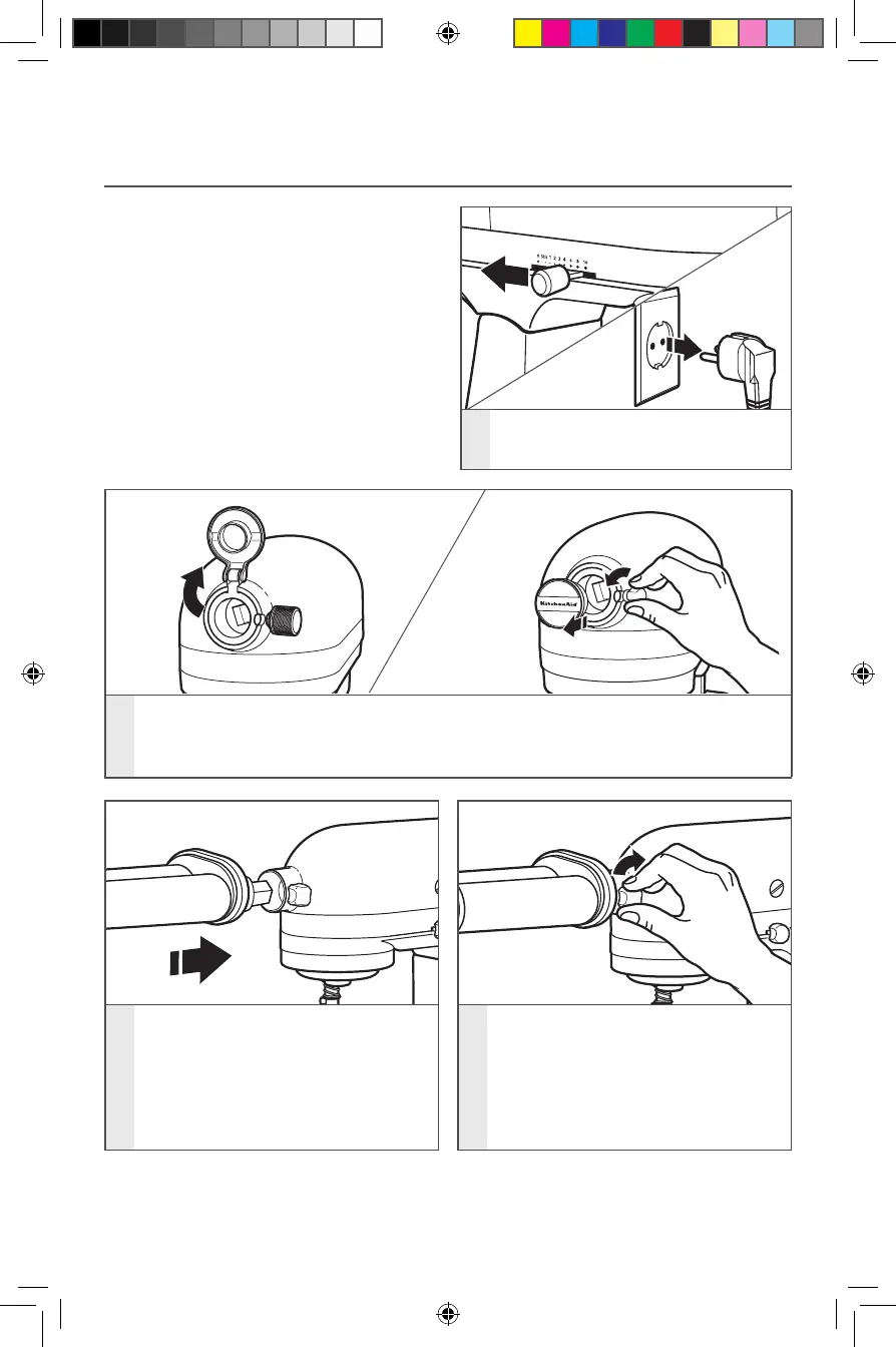 För köksmaskiner med löstagbart navskydd: Vrid tillsatsvredet motsols