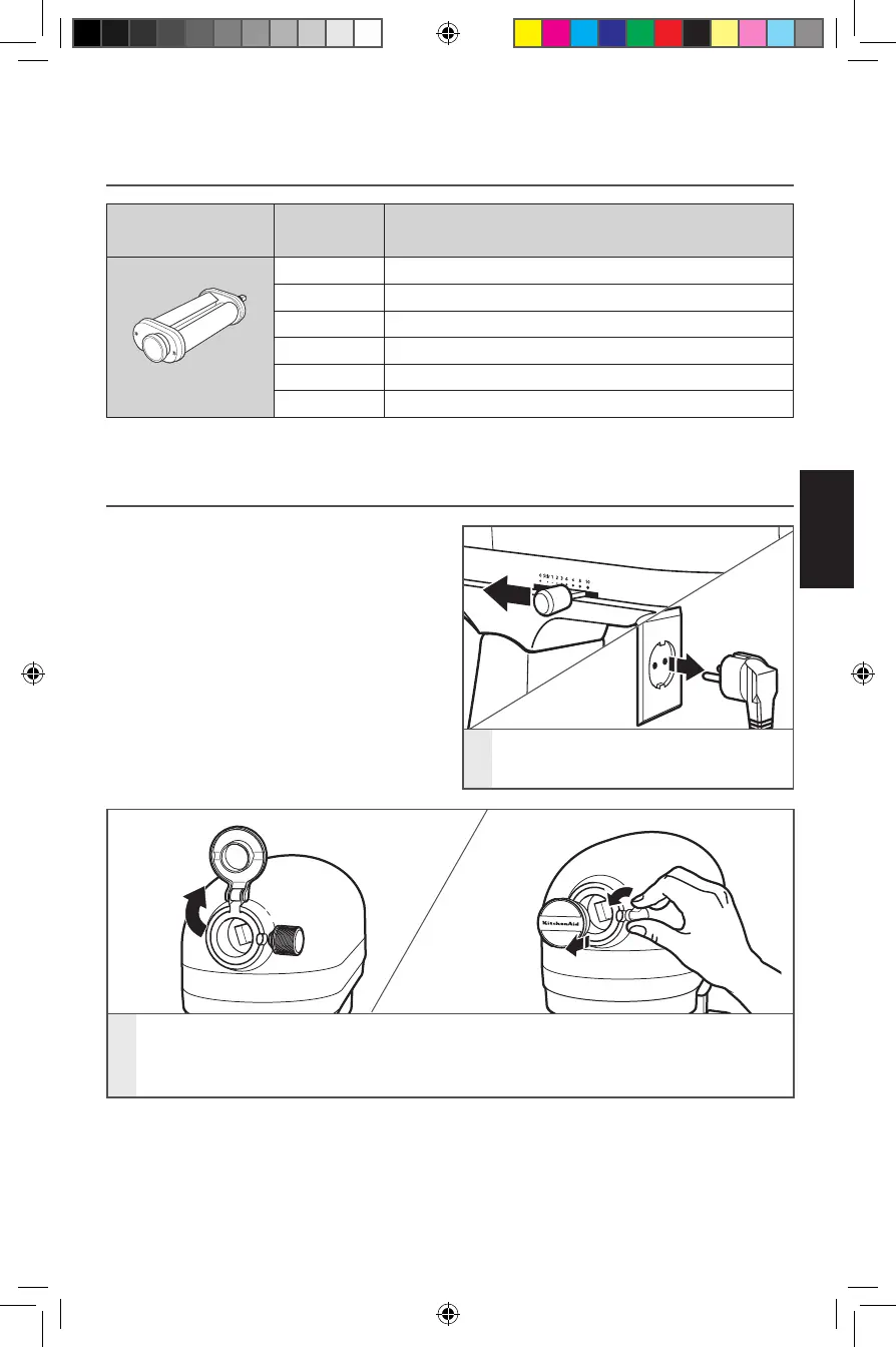 Fyrir borðhrærivélar með hlíf á hjörum fyrir fylgihlutadrif: Smelltu upp til að opna.