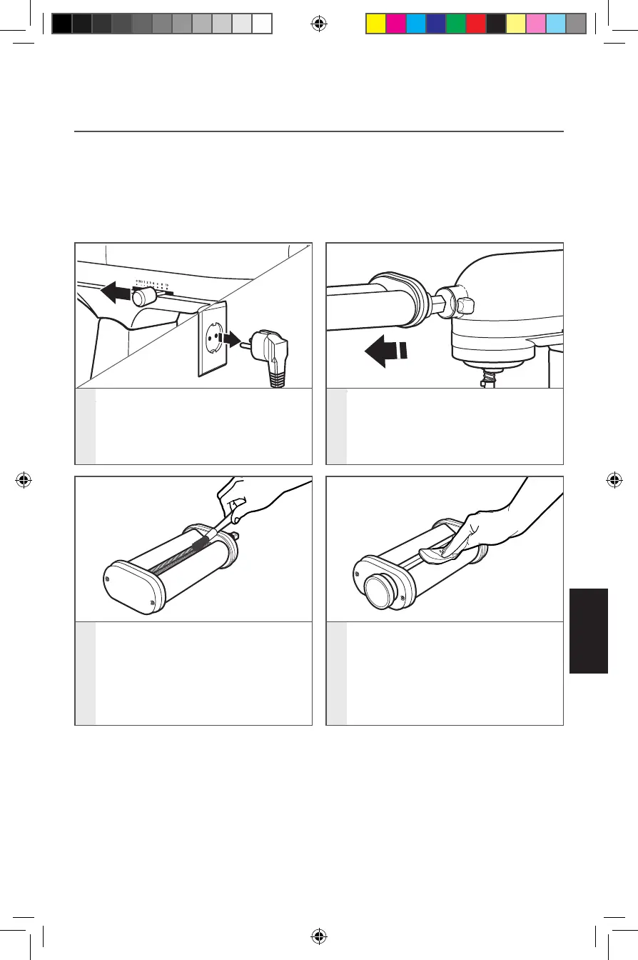 DŮLEŽITÉ: K čištění strojku na rozvalování těsta a kráječů na těstoviny nepoužívejte kovové