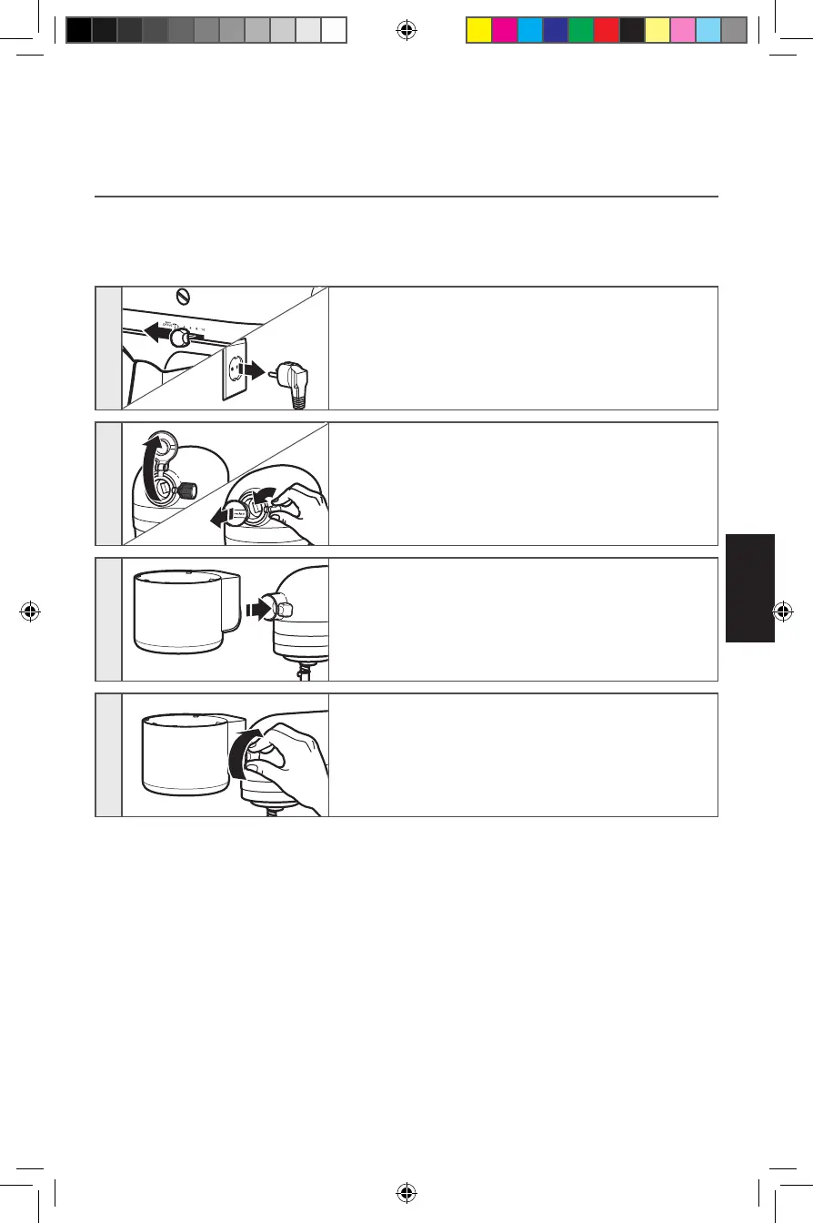 dezeefgroep en de draaitrechter afnemen en schoonvegen met een warme vochtige doek�