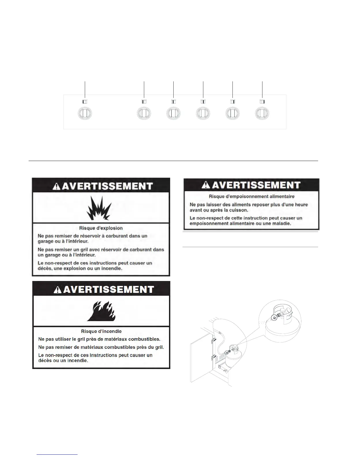 C. Bouton du brûleur de centre-droit du gril D. Bouton du brûleur de centre-droit du gril