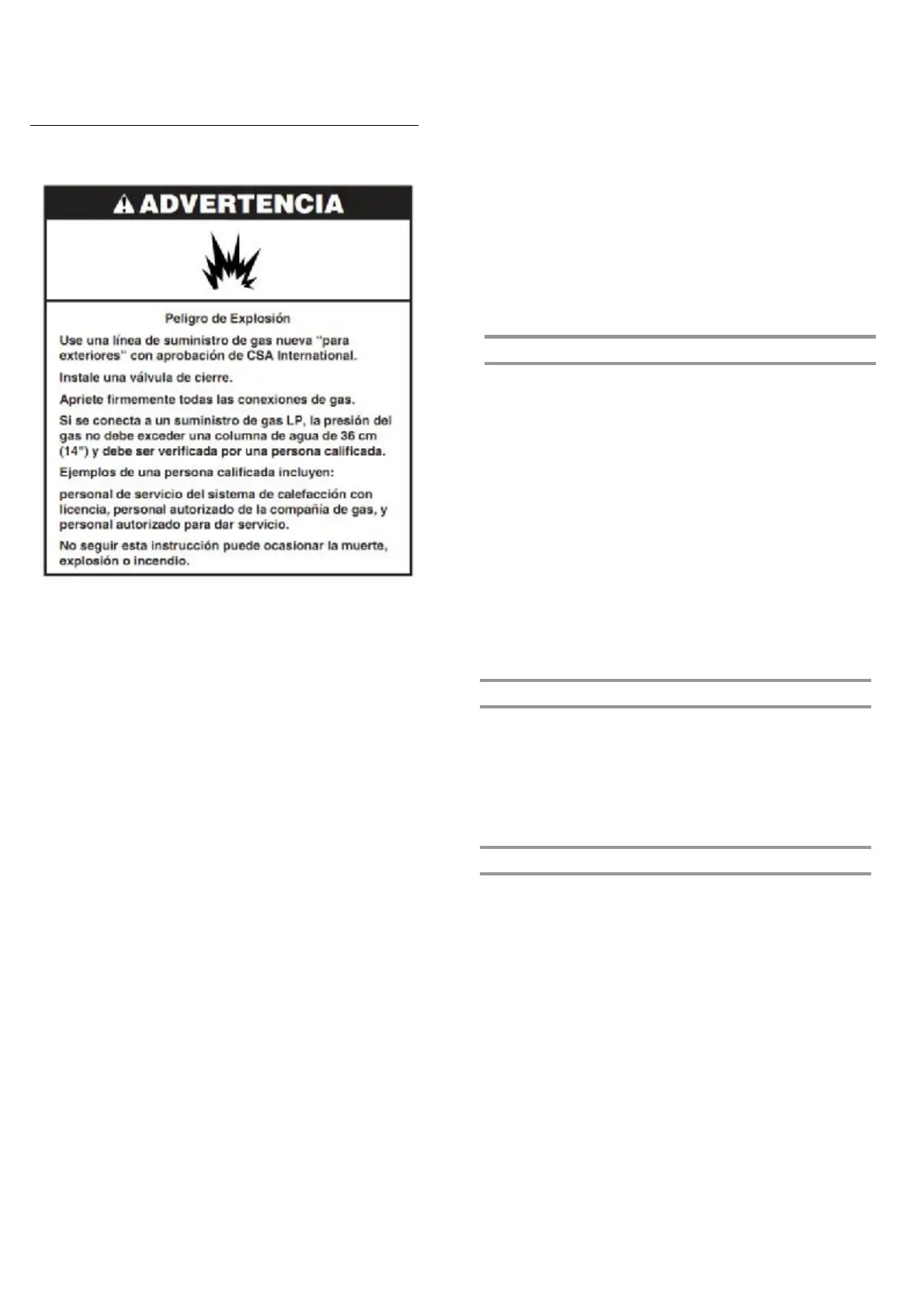 gas. Deberá usarse el juego para la convesión provisto con el
