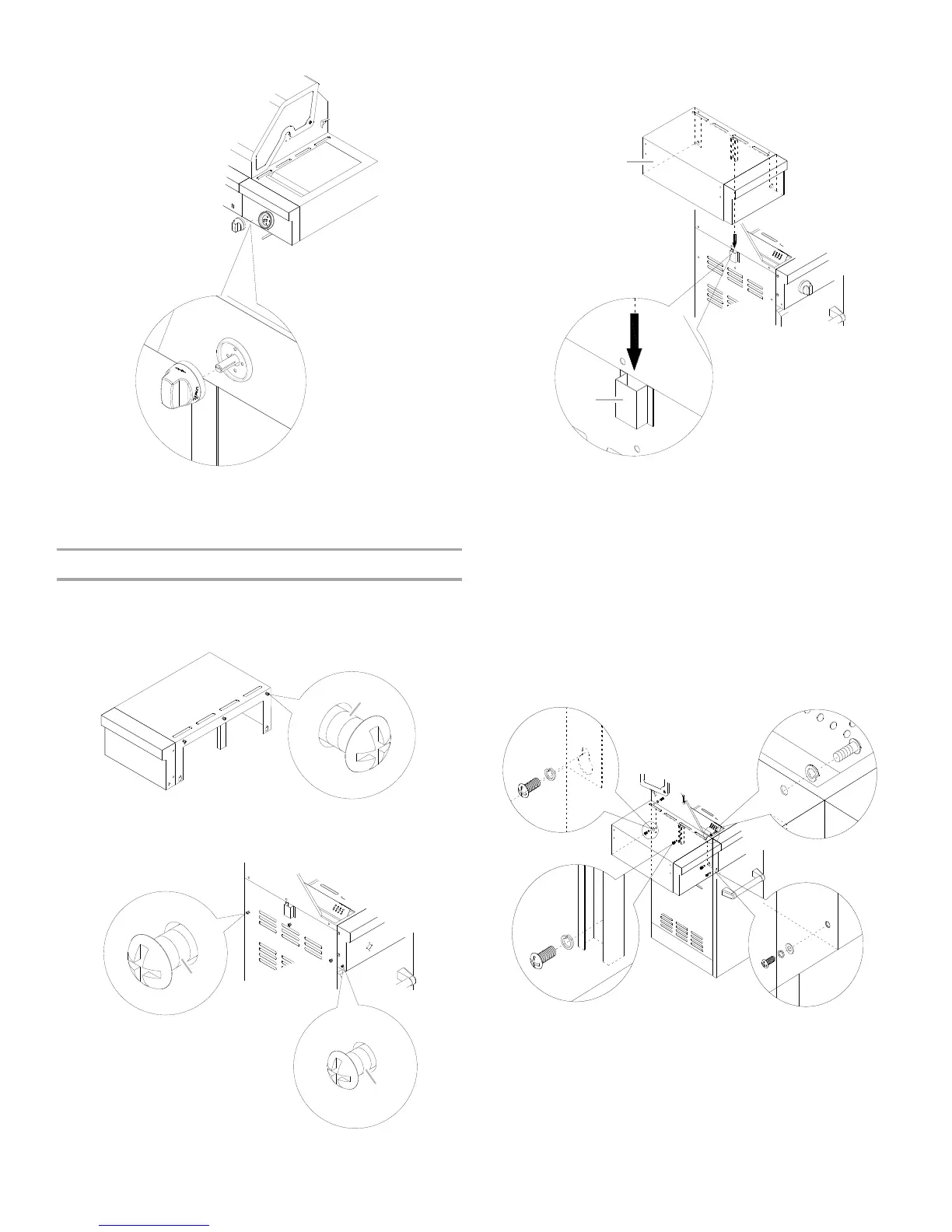 6. Attach the top of the side shelf to the grill (B) by inserting the