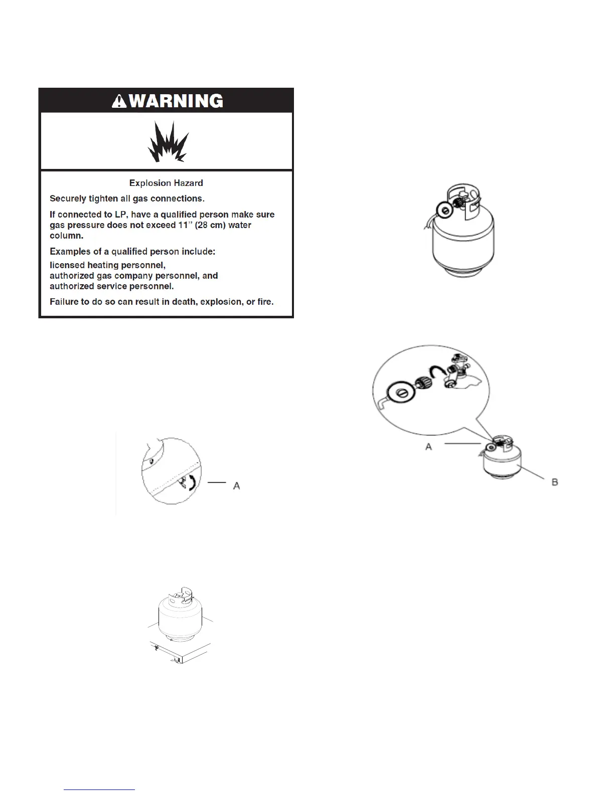 2. Check that the 20 lb LP gas fuel tank valve has the proper