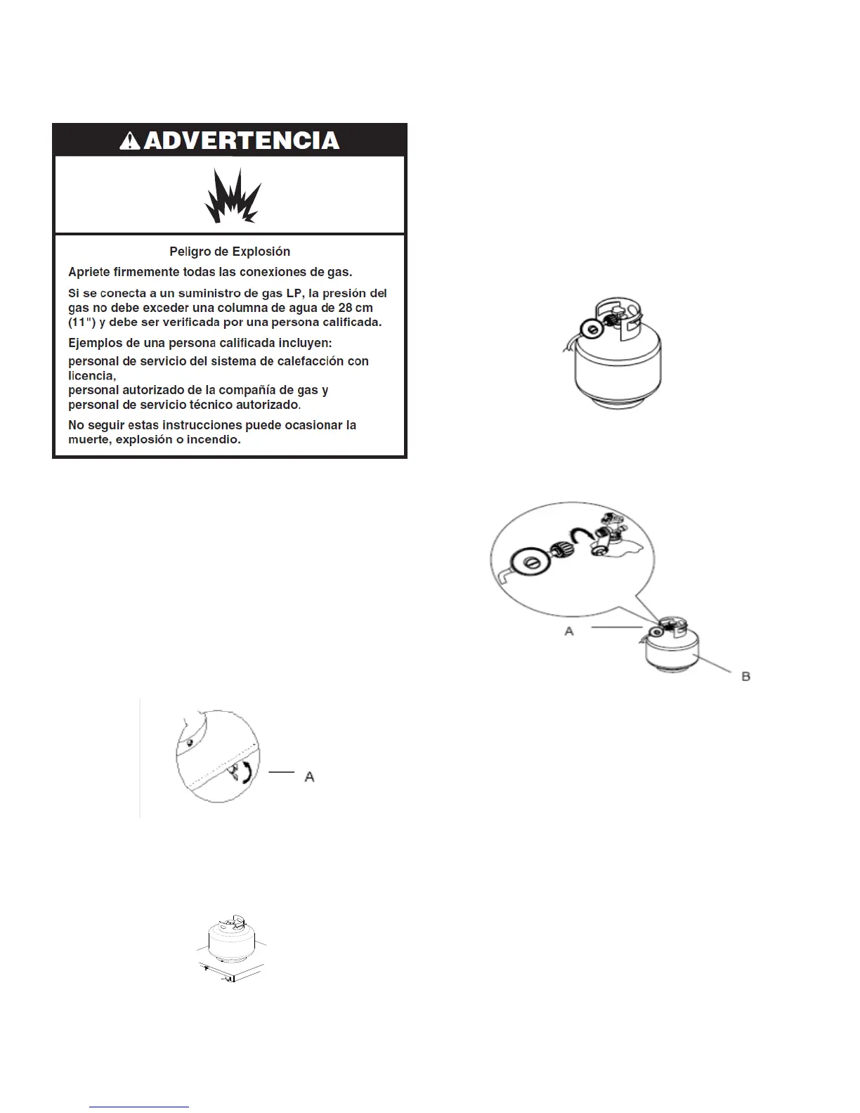 NOTA: Mantenga siempre el cilindro de gas LP en una orientación