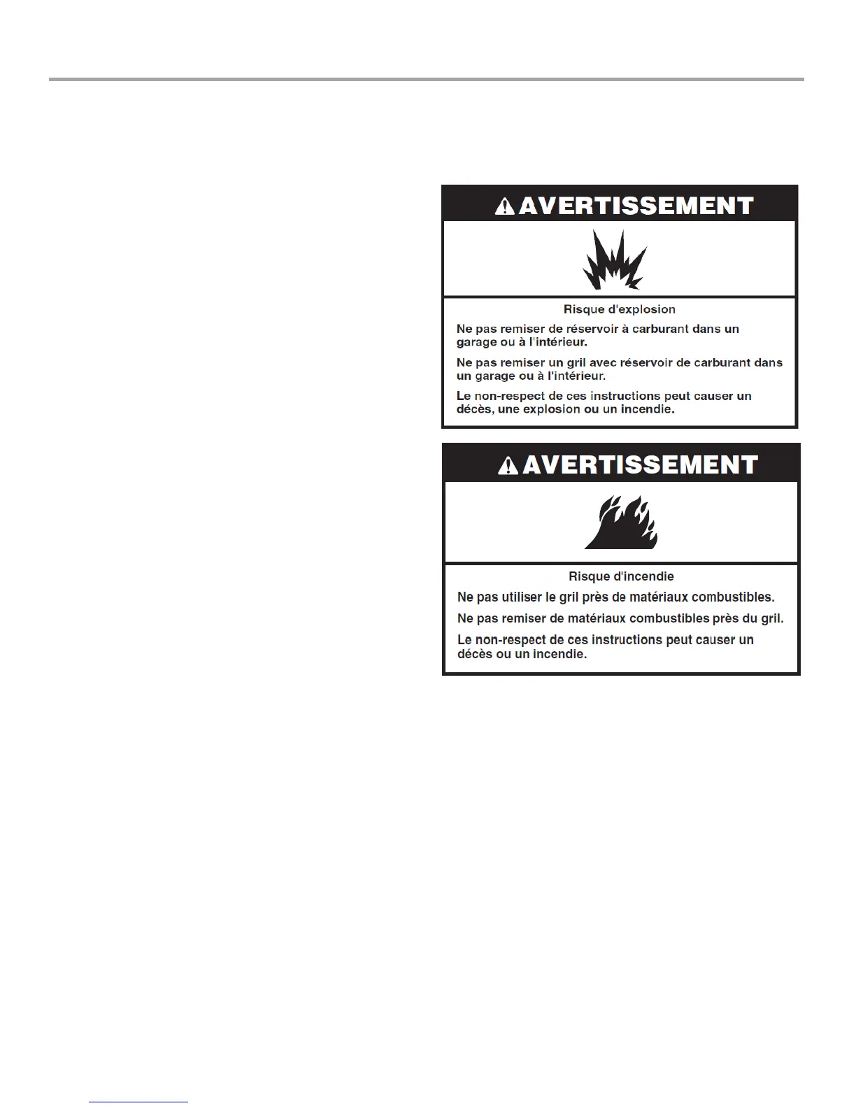 Dégagement jusqu’au matériel combustible pour les grils :