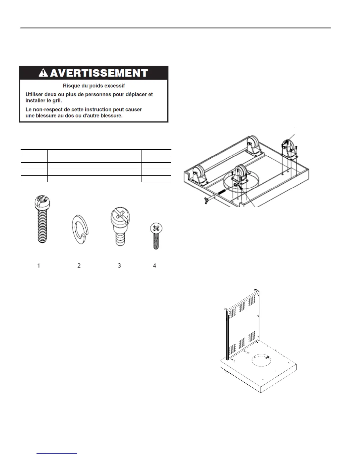 l'assemblage du gril si une pièce est manquante ou