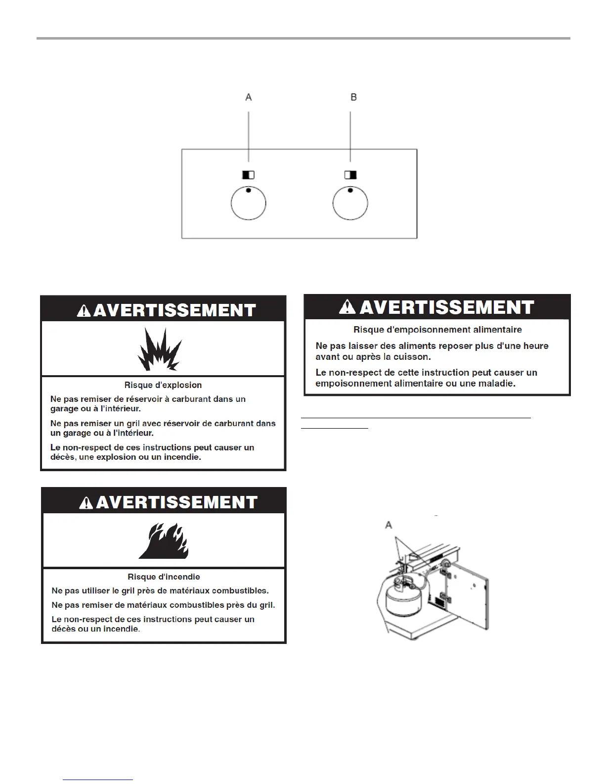 A. Bouton de commande du brûleur principal (côté gauche) B. Bouton de commande du brûleur principal (côté droit)