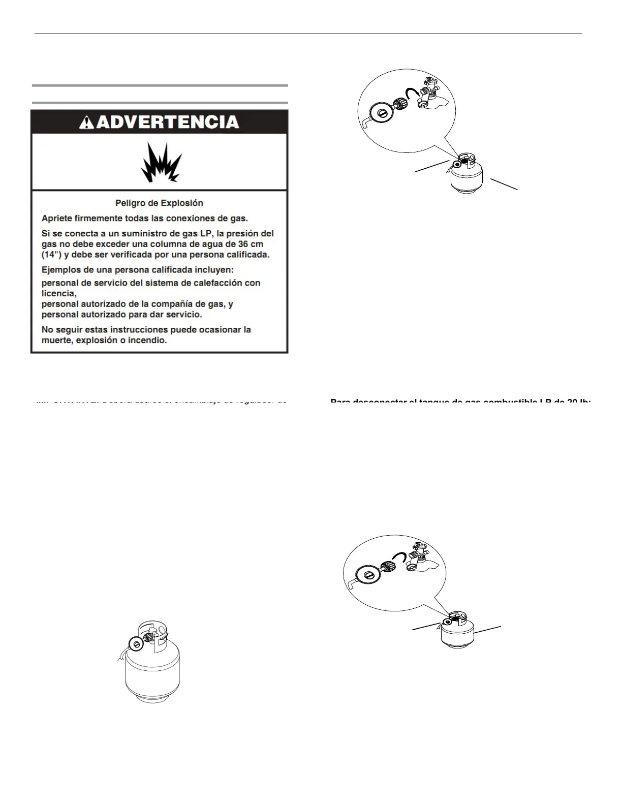 Para desconectar el tanque de gas combustible LP de 20 lb: