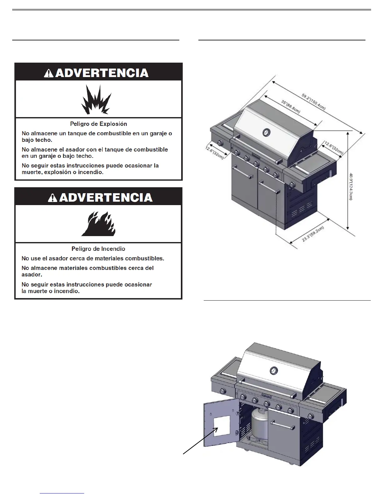 del asador y cualquier construcció combustible.