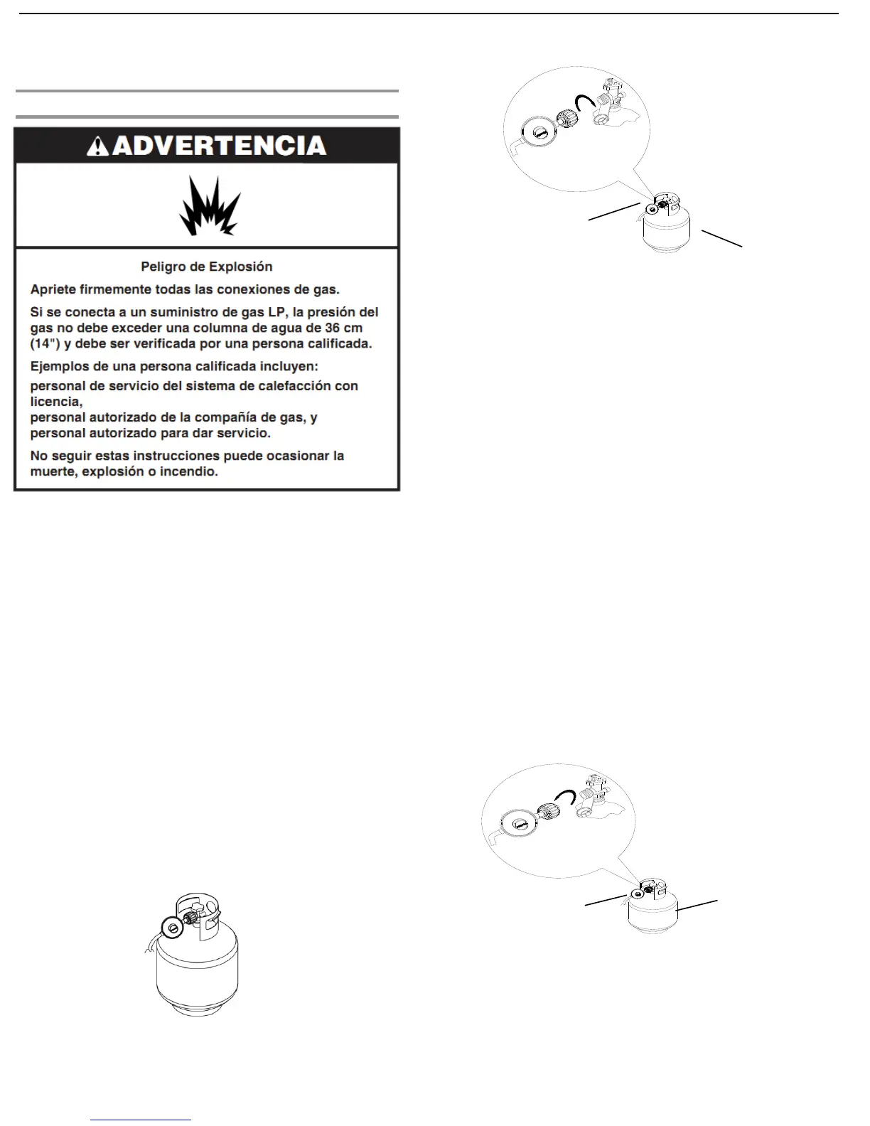 o tapones puede ocasionar fugas de propano.