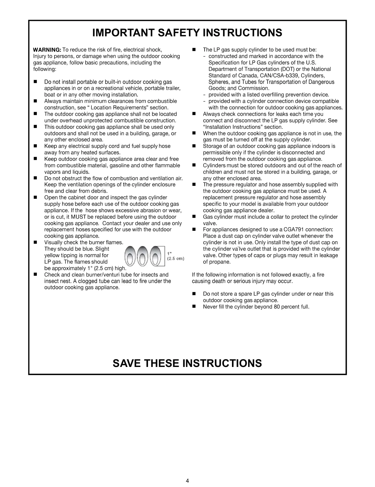 KitchenAid 720-0953 (LP) - Important Safety Instructions; LP Gas Cylinder and Appliance Safety; Flame Appearance and Adjustment