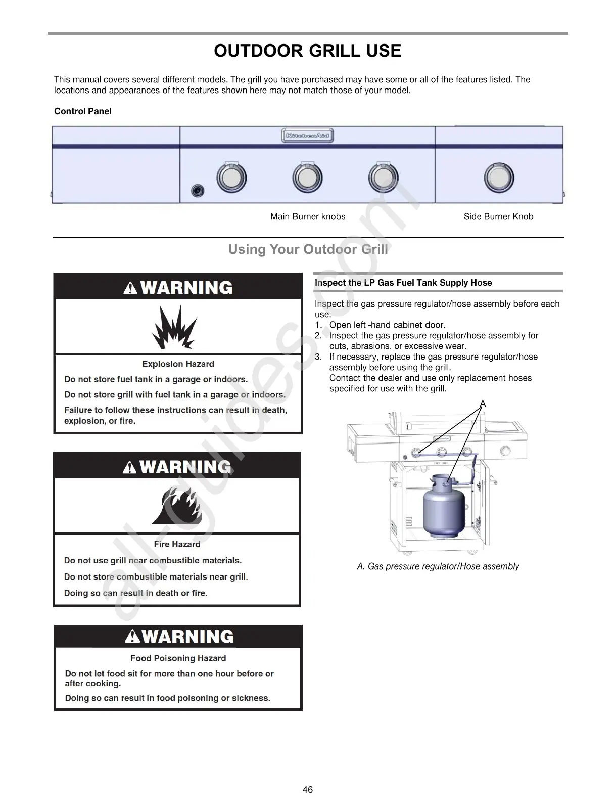 KitchenAid 720-0953 (LP) - Outdoor Grill Use; Using Your Outdoor Grill; LP Gas Fuel Tank Hose Inspection