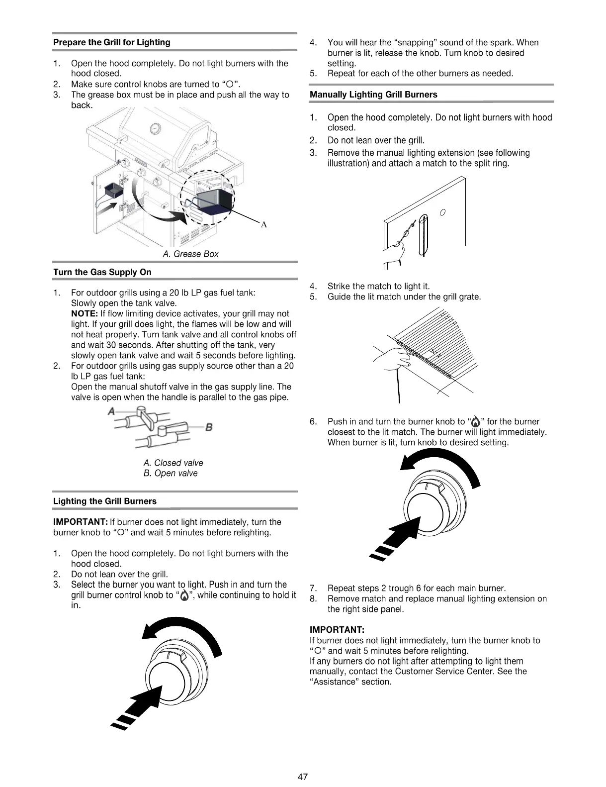KitchenAid 720-0953 (LP) - Grill Lighting Procedures; Prepare Grill for Lighting; Turn Gas Supply On; Lighting the Grill Burners