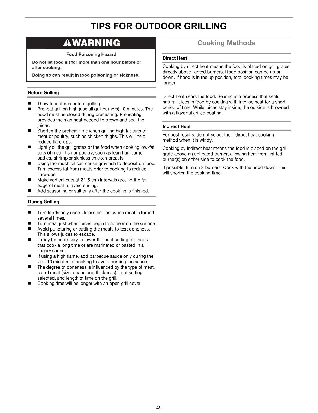 KitchenAid 720-0953 (LP) - Outdoor Grilling Tips; Cooking Methods; Before and During Grilling