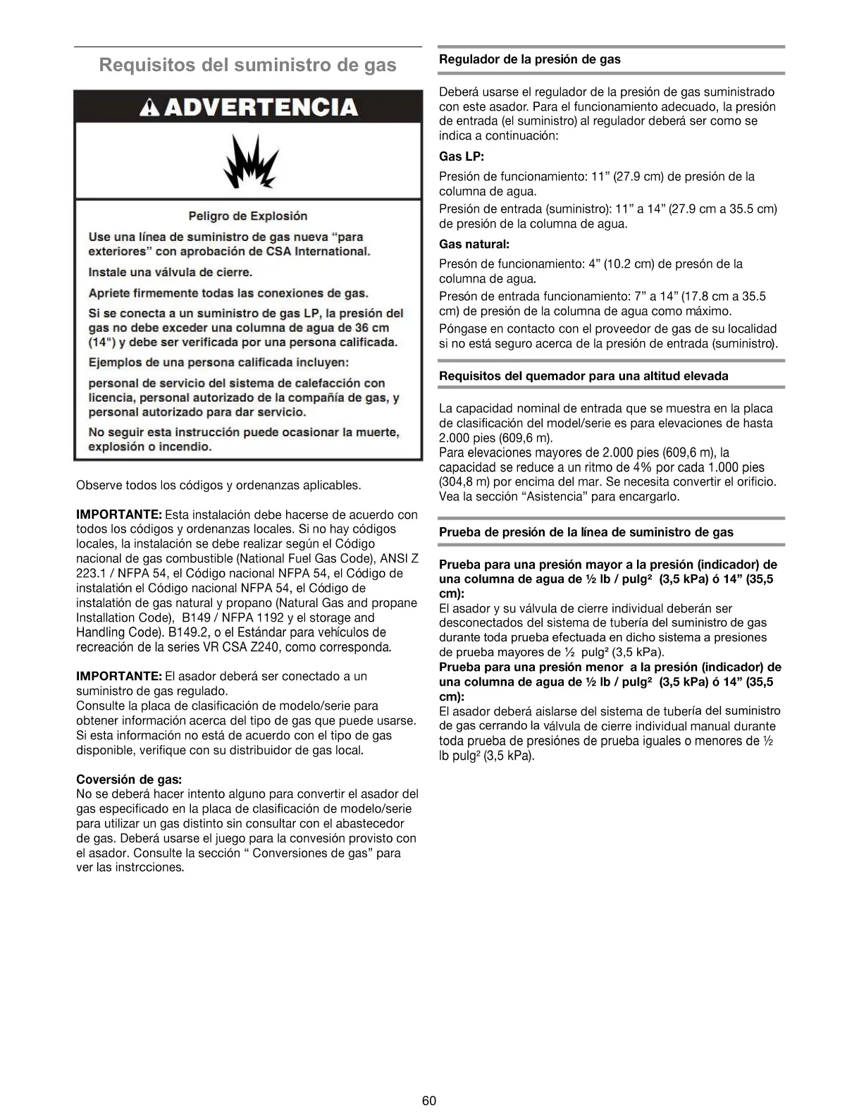 Requisitos del suministro de gas
