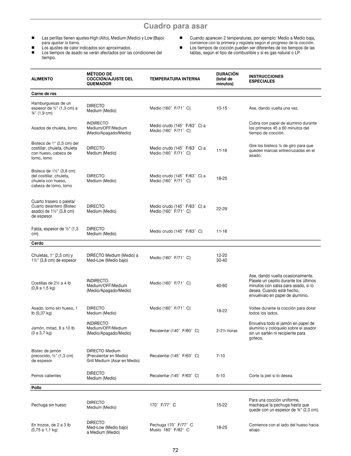 Cuadro para asar