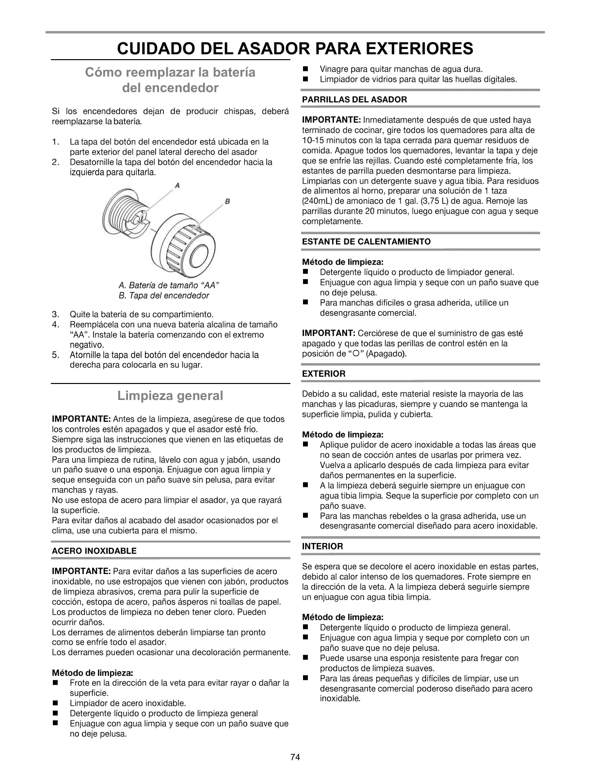 CUIDADO DEL ASADOR PARA EXTERIORES