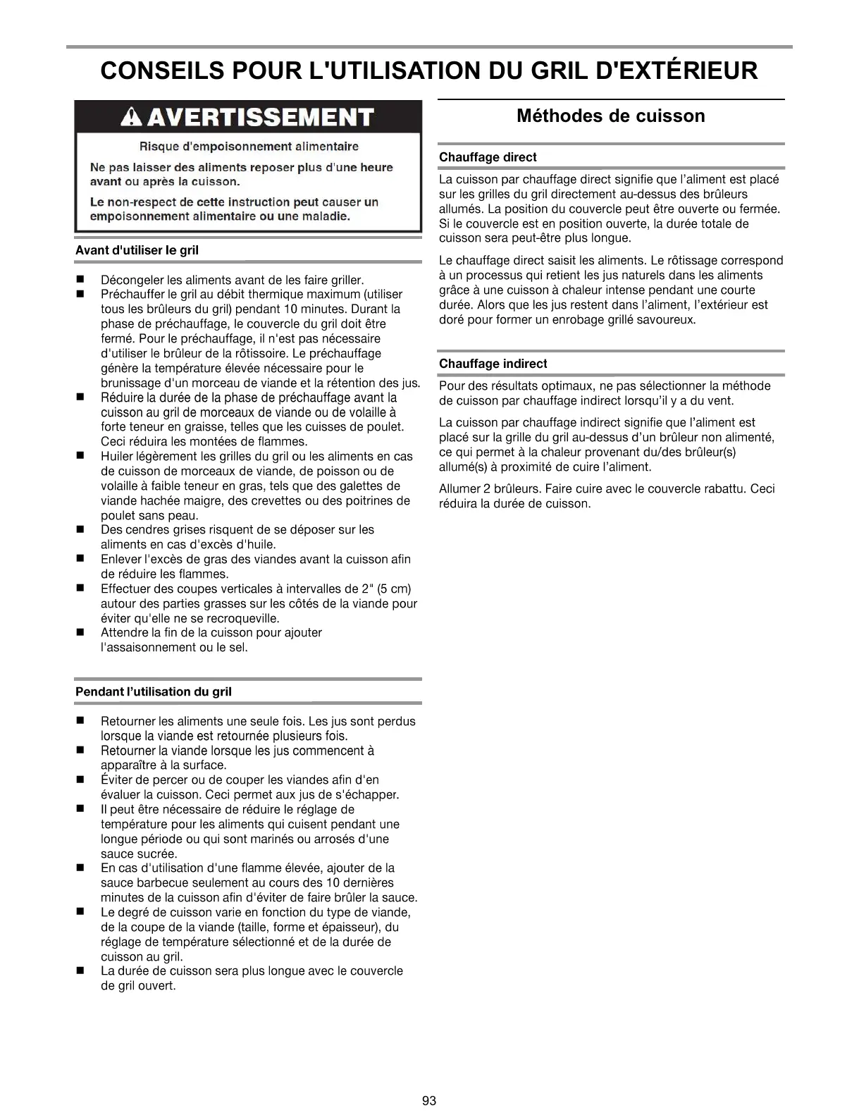 CONSEILS POUR L'UTILISATION DU GRIL D'EXRIEUR