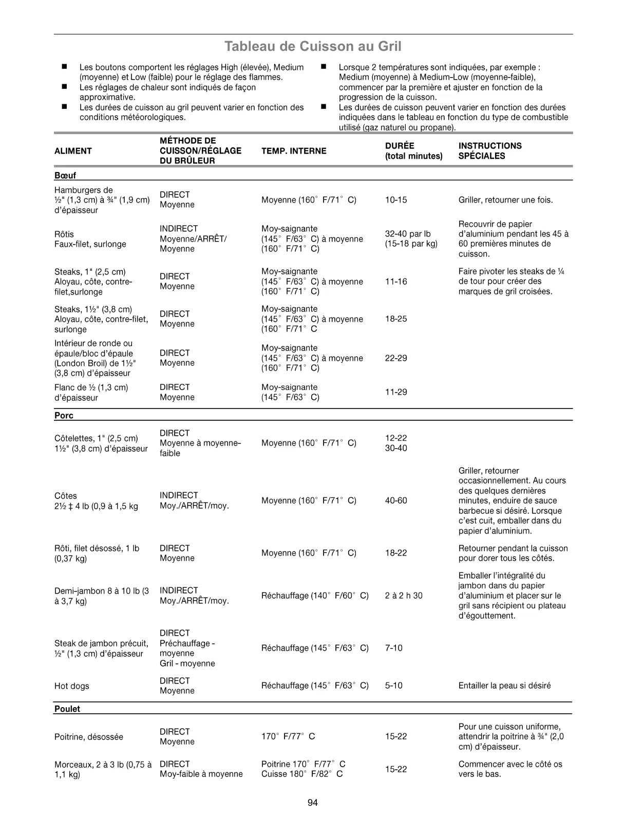 Tableau de Cuisson au Gril