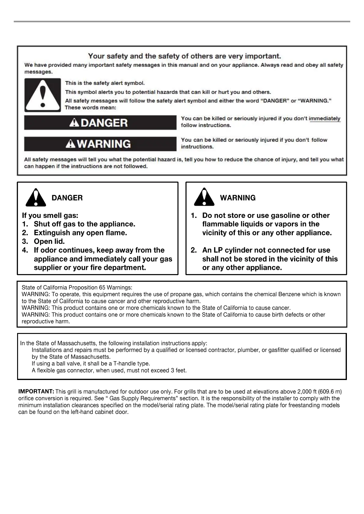 KitchenAid 720-0953A (LP) - Outdoor Grill Safety; If You Smell Gas