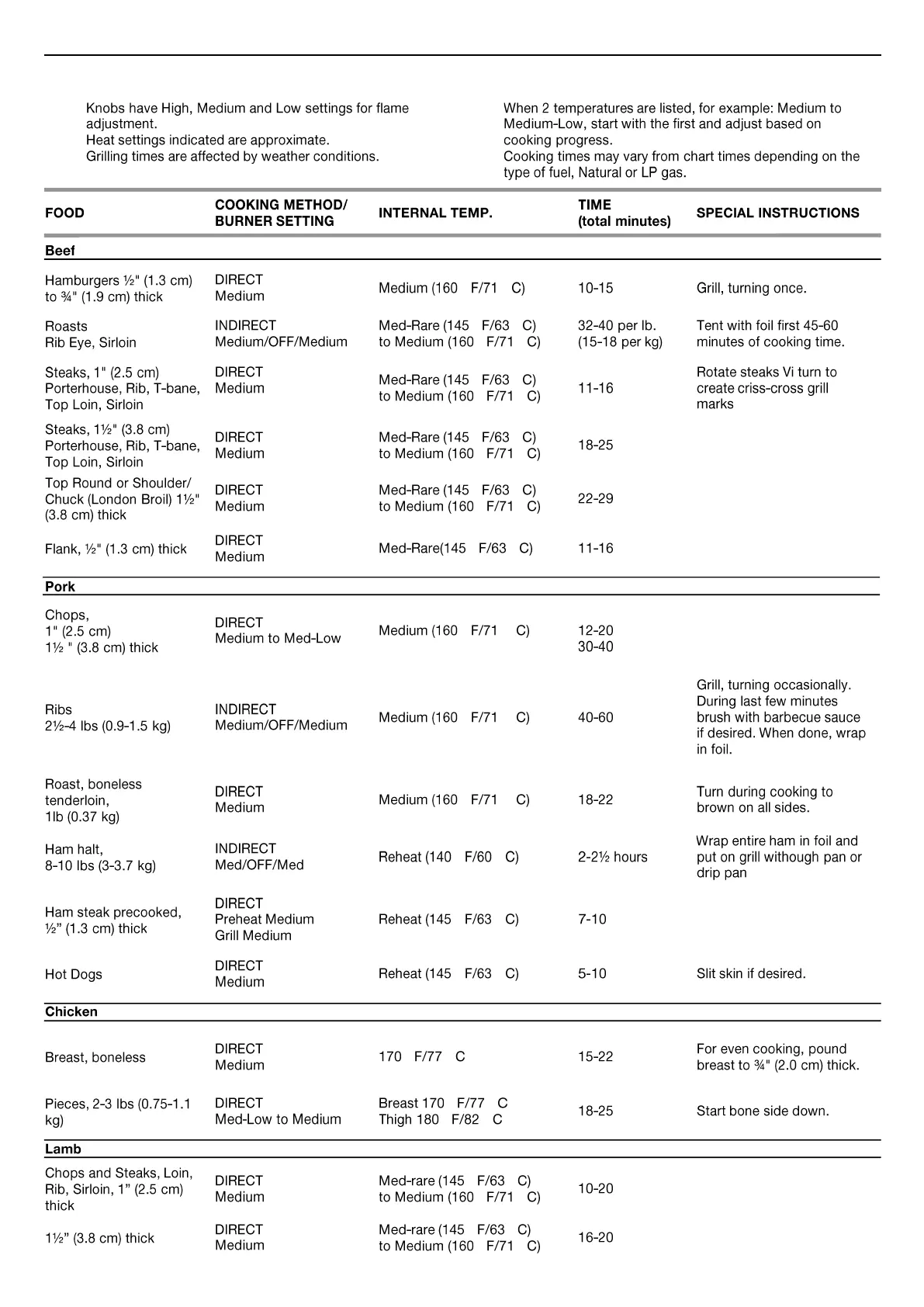 KitchenAid 720-0953A (LP) - Grilling Chart