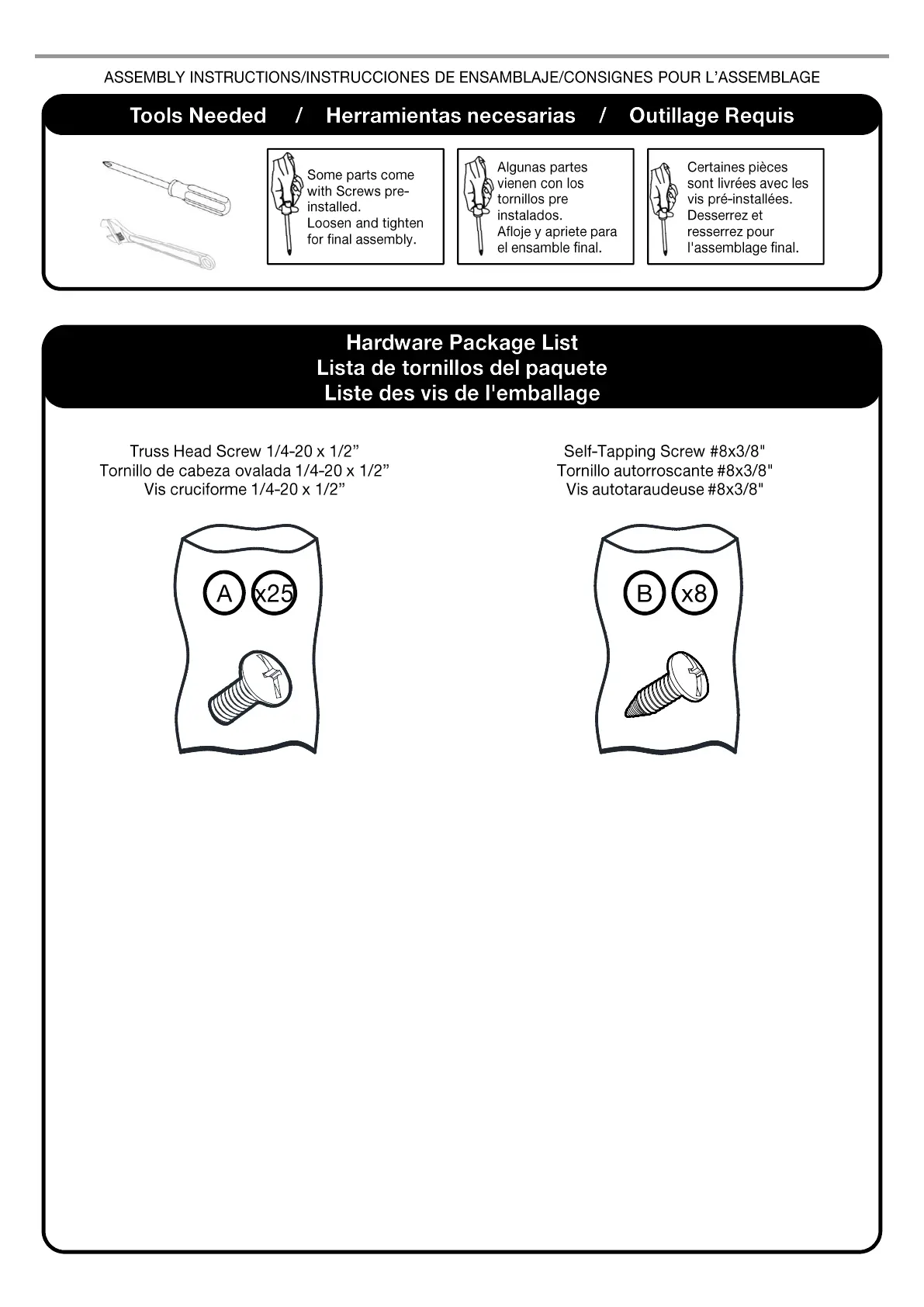 KitchenAid 720-0953A (LP) - Assembly; Tools Needed; Hardware Package List