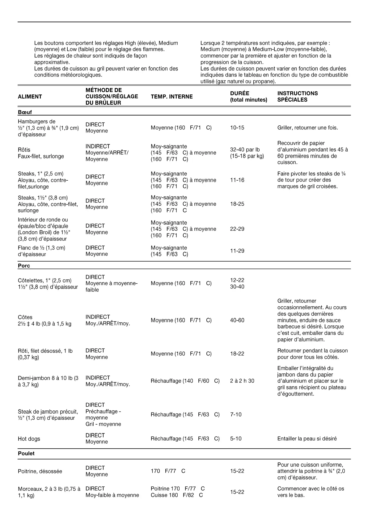 Tableau de Cuisson au Gril