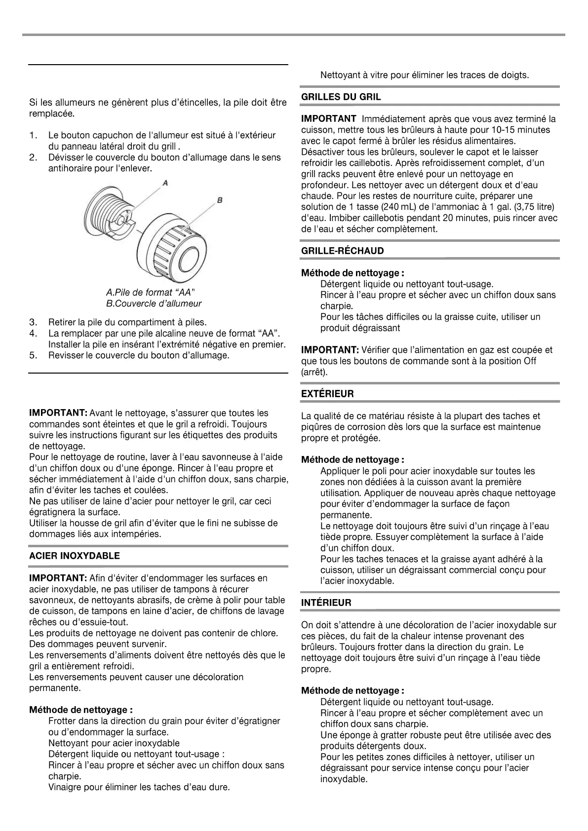 ENTRETIEN DU GRIL D’EXTÉRIEUR
