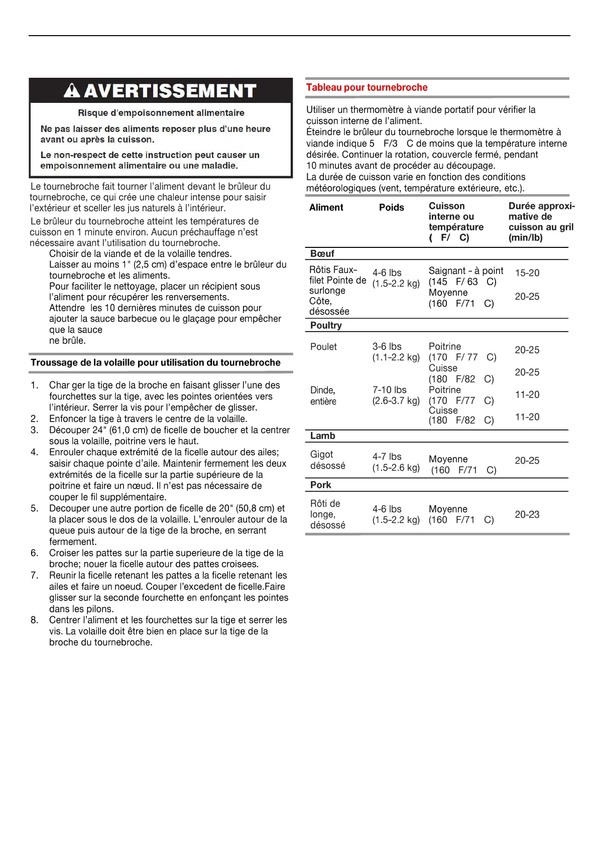 Conseils de cuisson à l’aide du tournebroche