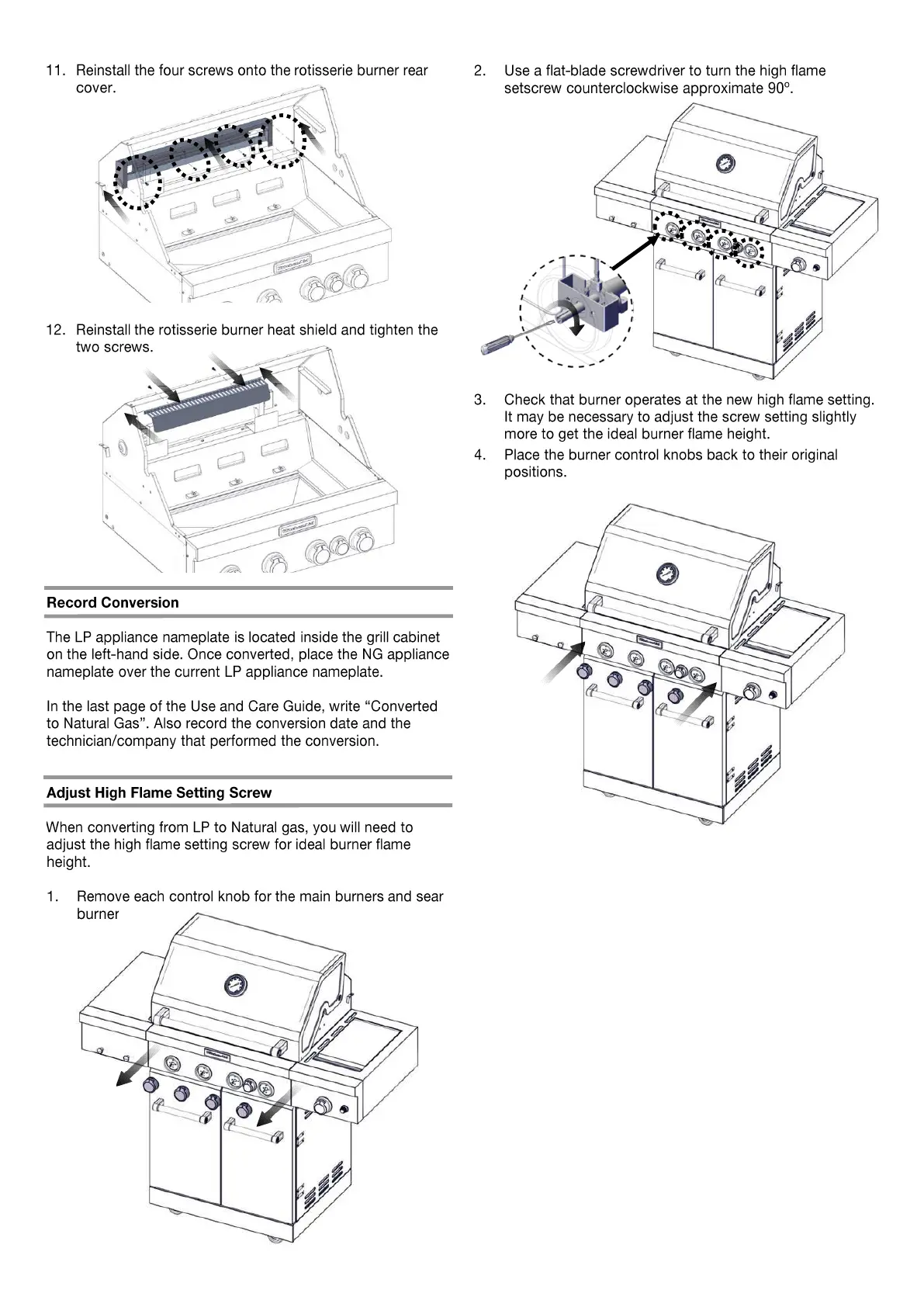 KitchenAid 720-0954 - Record Conversion; Adjust High Flame Setting Screw