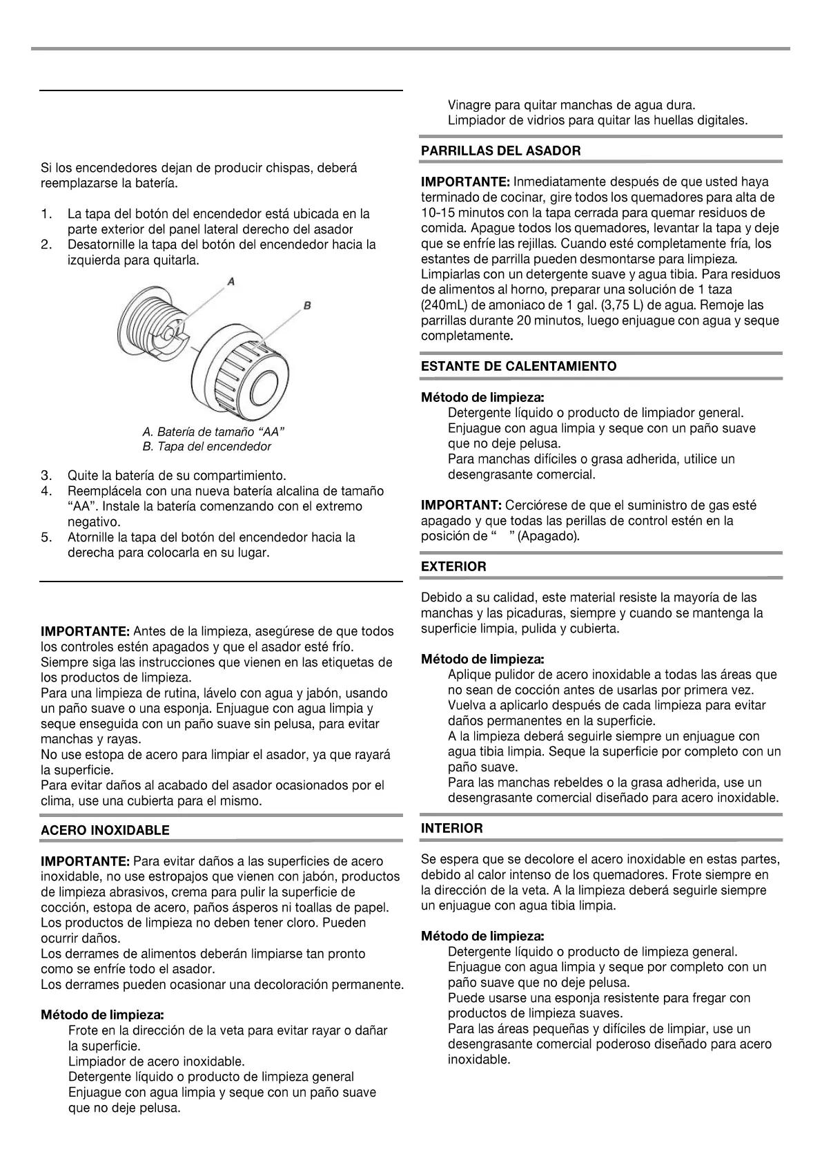 CUIDADO DEL ASADOR PARA EXTERIORES
