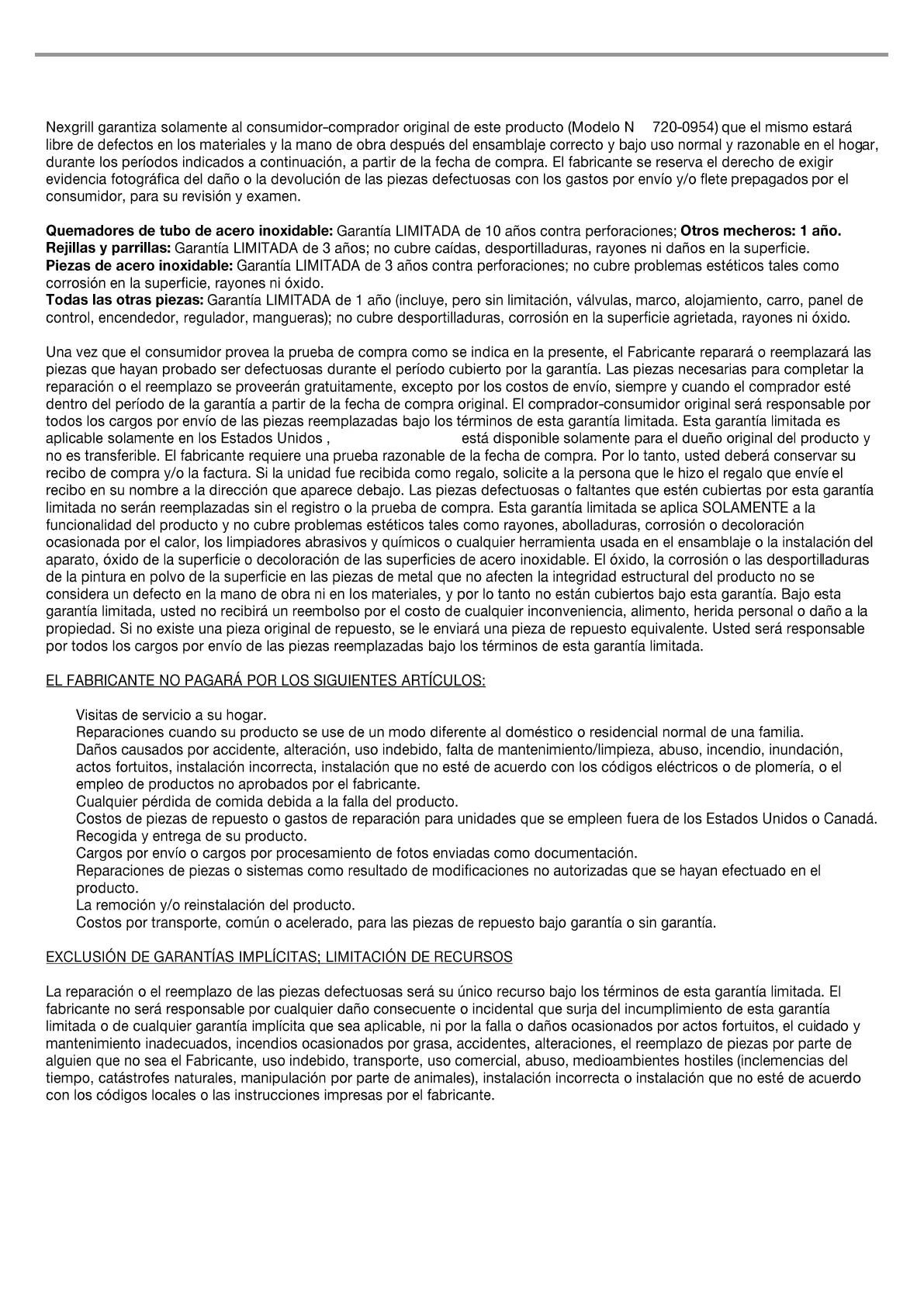 GARANTÍA LIMITADA (Modelo N