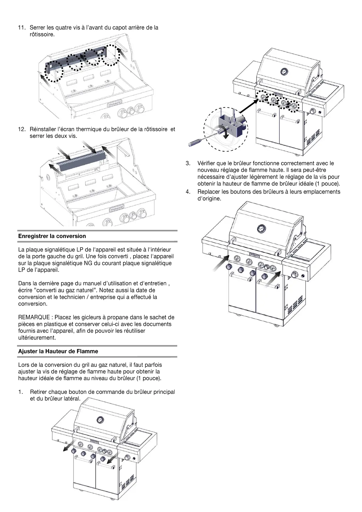 réglage de flamme haute dans le sens inverse des