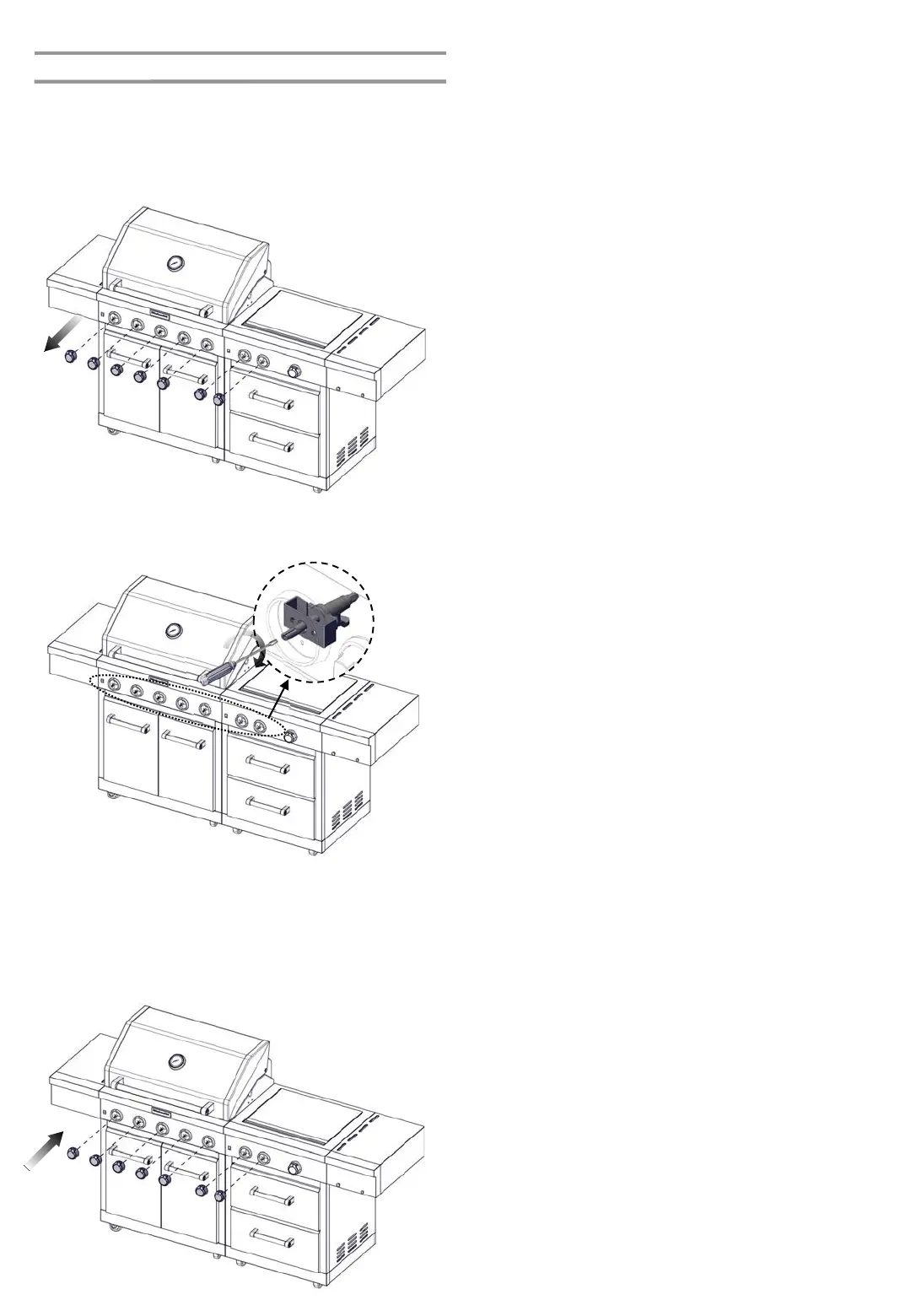 1. Remove each control knob for the main burners and sear