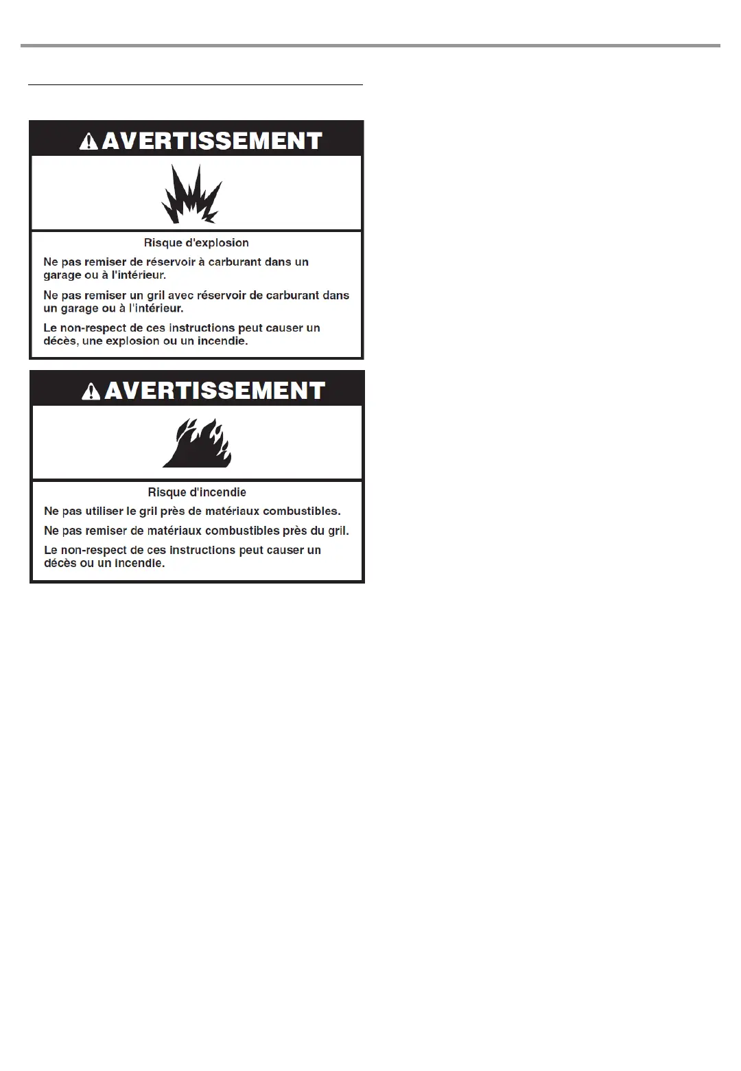 Dégagement jusqu’au matériel combustible pour les grils