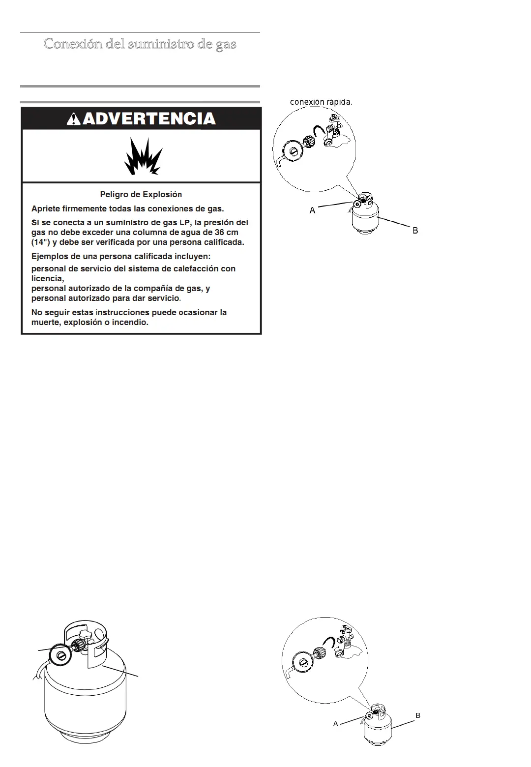 NOTA: Mantenga siempre el cilindro de gas LP en una