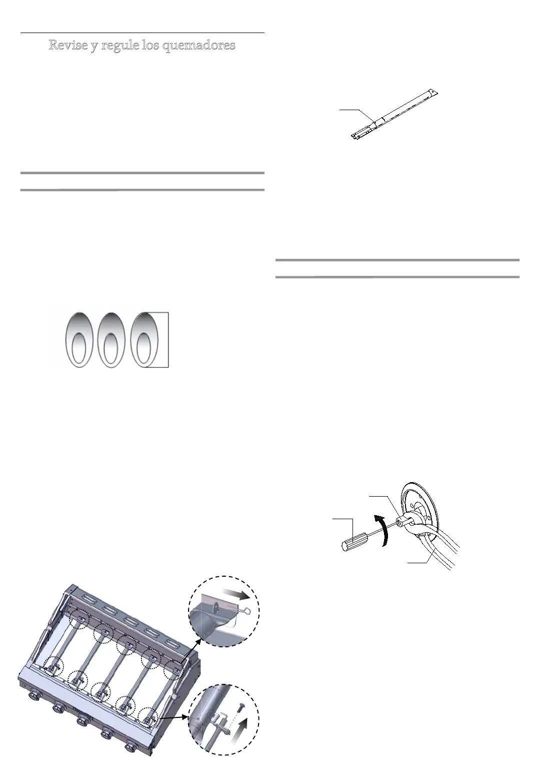 Para revisar las llamas del quemador del asador y ajustarlas,