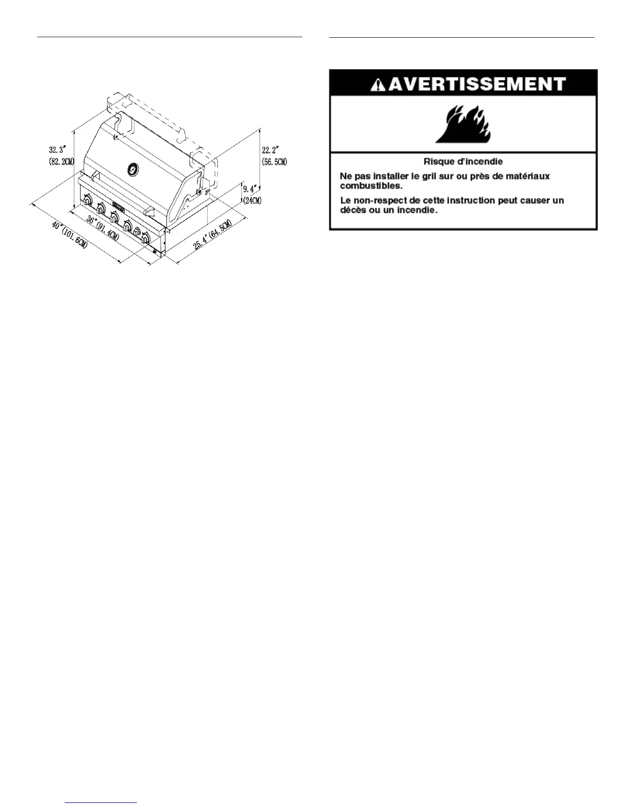L’enceinte du gril d’extérieur encastré doit être d’un minimum