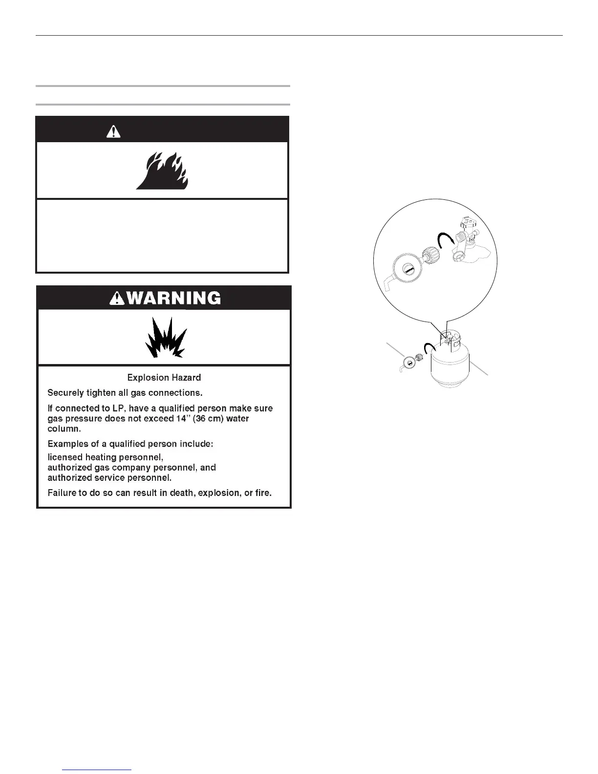 clockwise to connect to the 20 lb LP gas fuel tank as shown.