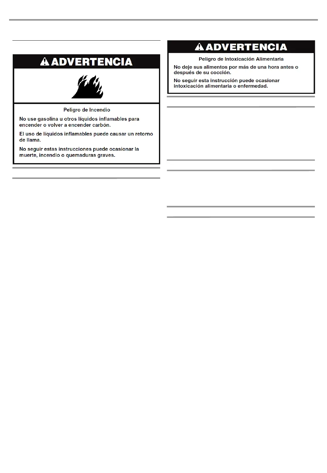 necesitar más briquetas de carbón, ajustar la posición de la charola
