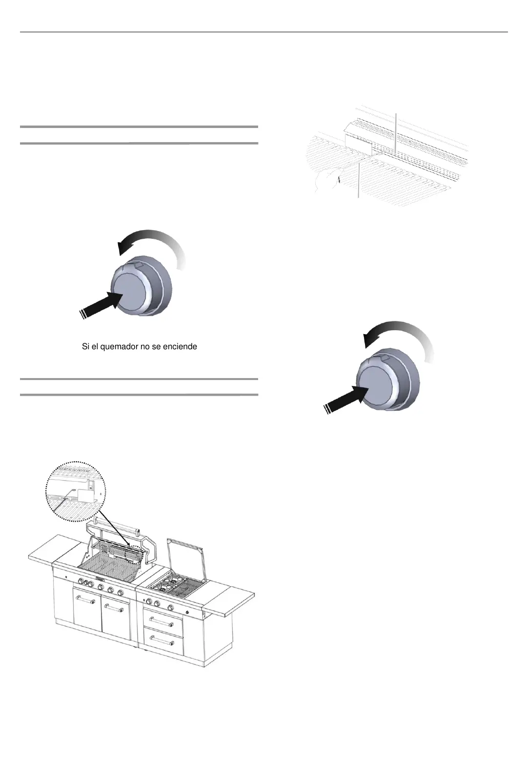 6. Empuje hacia dentro y gire la perilla del quemador hacia
