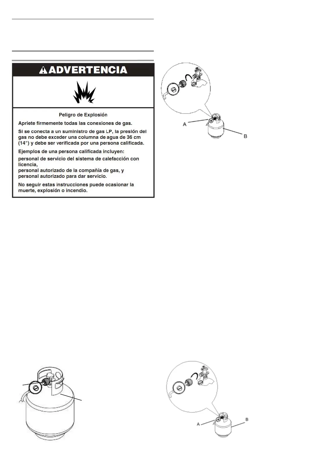 NOTA: Mantenga siempre el cilindro de gas LP en una