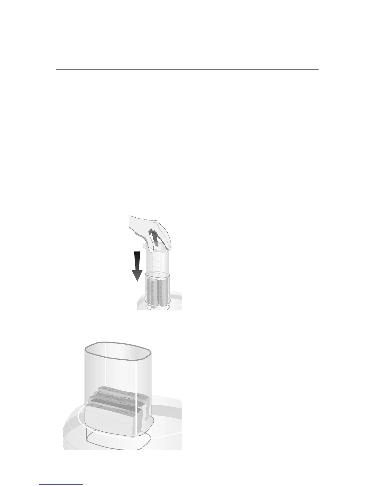 horizontally in layers in feed tube. Fill