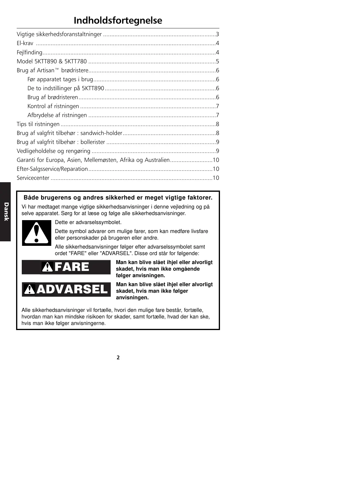 Brug af brødristeren....................................................................................6